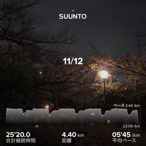 仕事が突然の繁忙期で 仕事の記憶が追いつかないです。 11/12 帰宅ラン 3分ダッシュのインターバル5本前回よりペース上げられた♪ しかしもうかなりいっぱいいっぱいだし 全速力の8割くらいでと書いてあったなあ。 しばらくはこれくらいを維持したい。しかし…